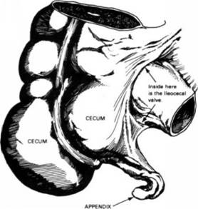 27.       The Appendix, that marvelous safety gland whose secretion prevents gas forming bacteria and other noxious germs from passing into the Small Intestines from the Colon. It has of late been allowed to function more normally since the education of the laity in the use of frequent enemas and skillful colonic irrigations.