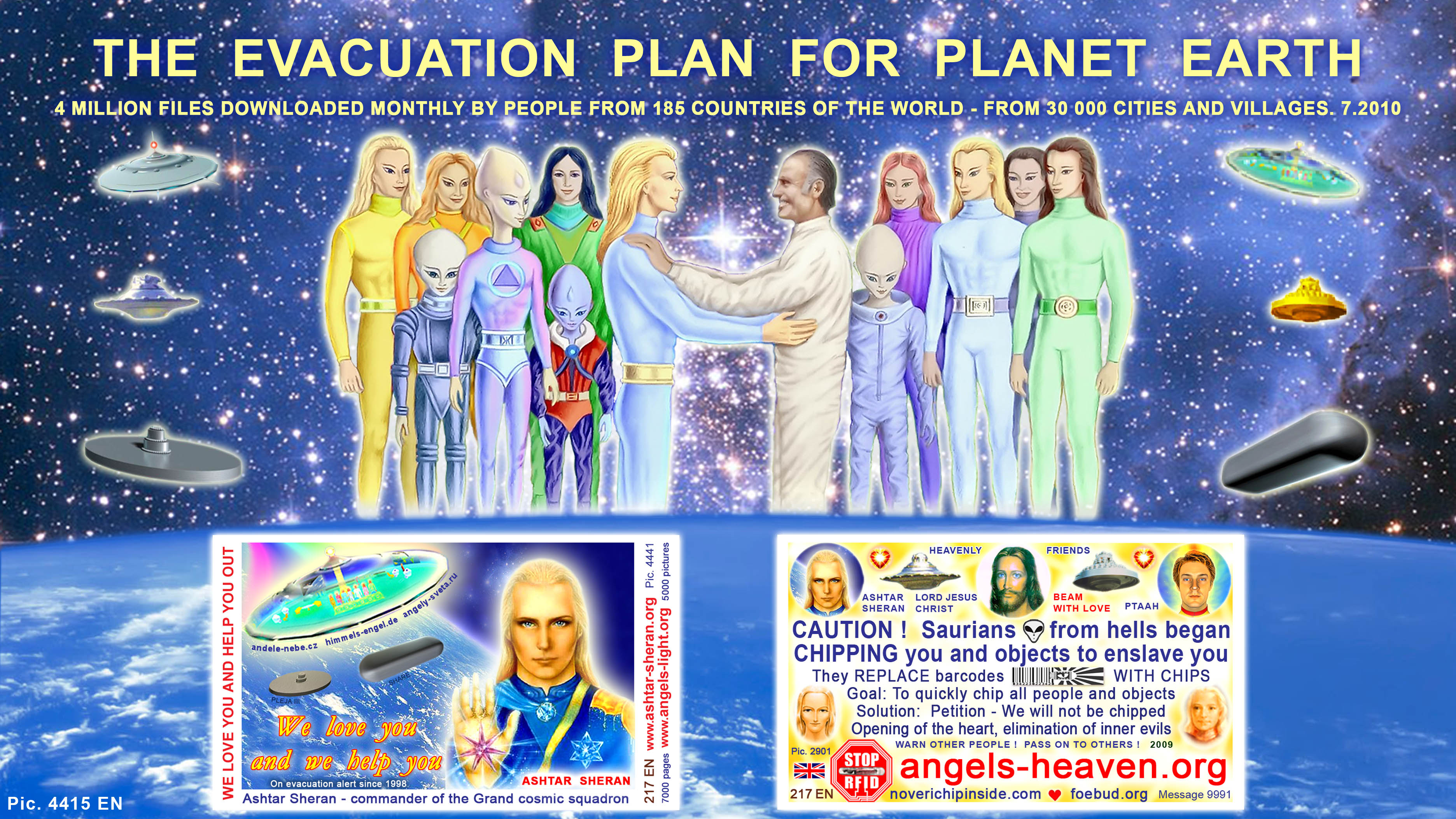 • JUST TEN YEARS HAVE PASSED (SINCE CHRISTMAS 1997) FROM THE TIME WHEN THE POWERS OF LIGHT – ASHTAR’S GRAND COSMIC SQUADRON AND PTAAH’S GREAT COSMIC SQUADRON FROM PLEIADES – BY WAY OF FIGHT PHYSICALLY EXPULSED THE POWERS OF DARKNESS FROM ENVIRONS AROUND THE PLANET EARTH. THE POWERS OF LIGHT THERE CONSEQUENTLY TOOK UP THEIR EVACUATION POSITIONS, NUMBERING ABOUT 100 000 COSMIC EVACUATION SPACESHIPS AND 250 MILLIONS HEAVENLY ANGELS. WITHIN THESE 10 YEARS, WHILE THE EVACUATION FOR THE TIME BEING DIDN’T HAVE TO TAKE PLACE, MANY PEOPLE GOT THE OPPORTUNITY TO GROW SPIRITUALLY WITH GREAT ASSISTANCE PROVIDED BY HEAVENLY ANGELS AND THE PRIMARY CREATOR OF EVERYTHING AND EVERYBODY. A NUMBER OF PEOPLE USED THIS OPPORTUNITY SUCCESSFULLY.